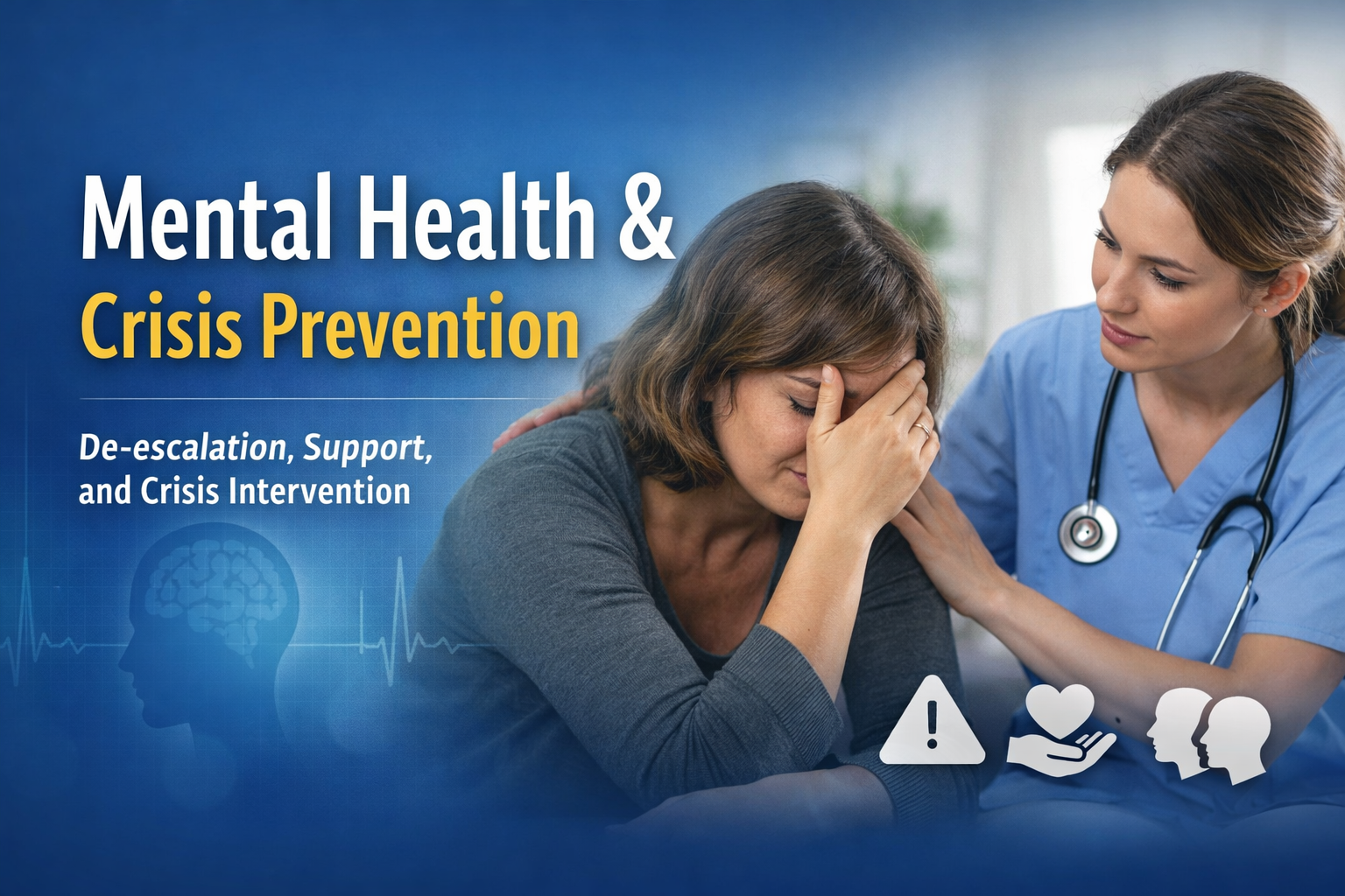 This course equips healthcare workers with practical skills to recognize, respond to, and manage mental health challenges and crisis situations. Participants will learn de-escalation techniques, communication strategies, and approaches to promote safety, reduce risk, and support individuals with compassion and confidence.